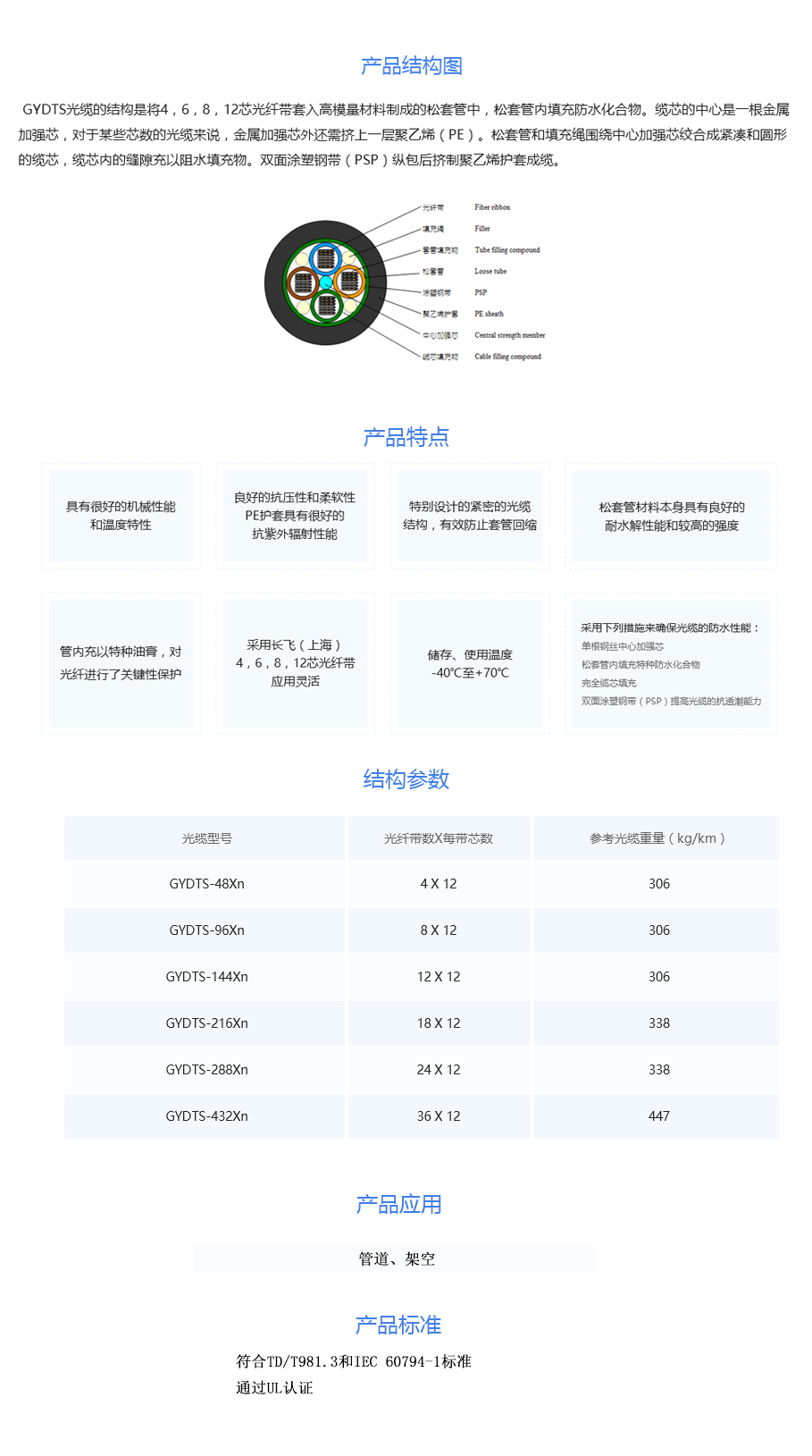 GYDTS 松套层绞式轻铠装光纤带光缆