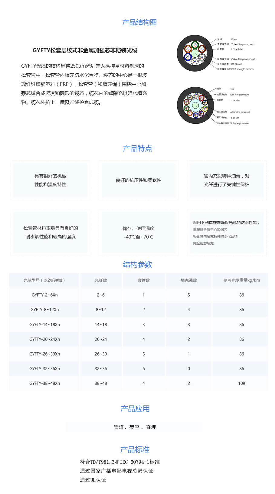 GYFTY 松套层绞式非金属加强芯非铠装光缆