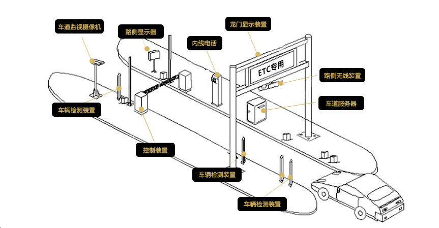 当ETC系统检测到车辆进入ETC车道的时候,安装在龙门架上的微波天线与安装在汽车挡风玻璃上的“电子标签”自动进行信息交换,与微波天线相连接的ETC车道计算机根据电子标签中存储的信息识别出车辆信息,并根据车主的使用情况计算并扣除通行费用。交易成功后,车道栏杆自动升起,放行车辆;车辆通过后,栏杆自动降下。整个收费过程无需人工干预,用户可不停车快速通过ETC收费车道。