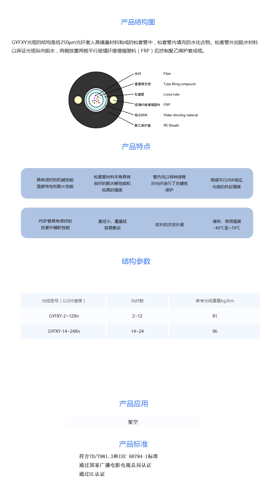 GYFXY 中心管式非金属非铠装光缆