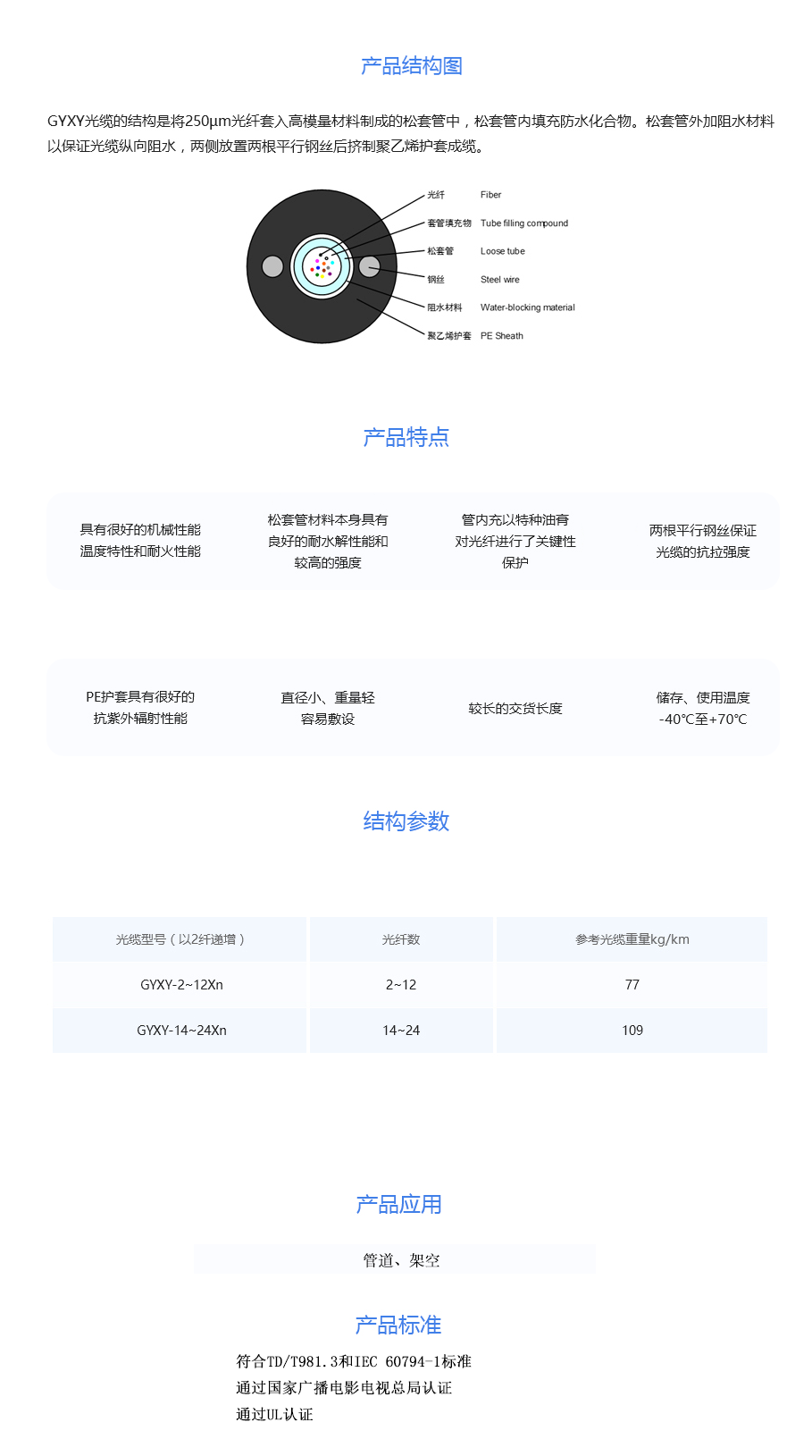 GYXTW束管式轻铠光缆