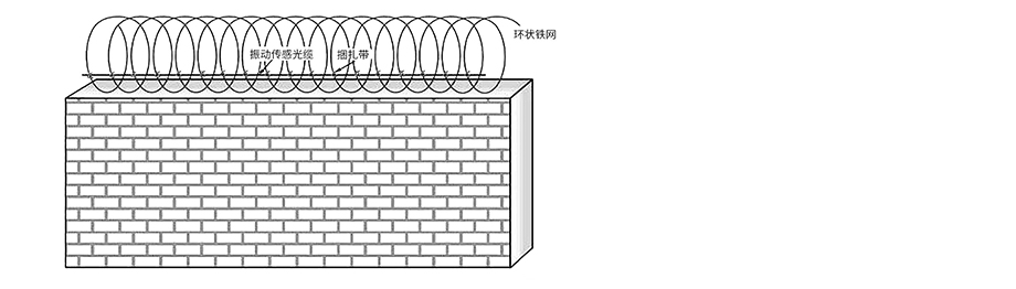 环状铁网安装时,应注意将光缆固定在围墙外侧靠近环状铁网底部的地方,如有需要可在围墙两侧各铺设一道光缆。